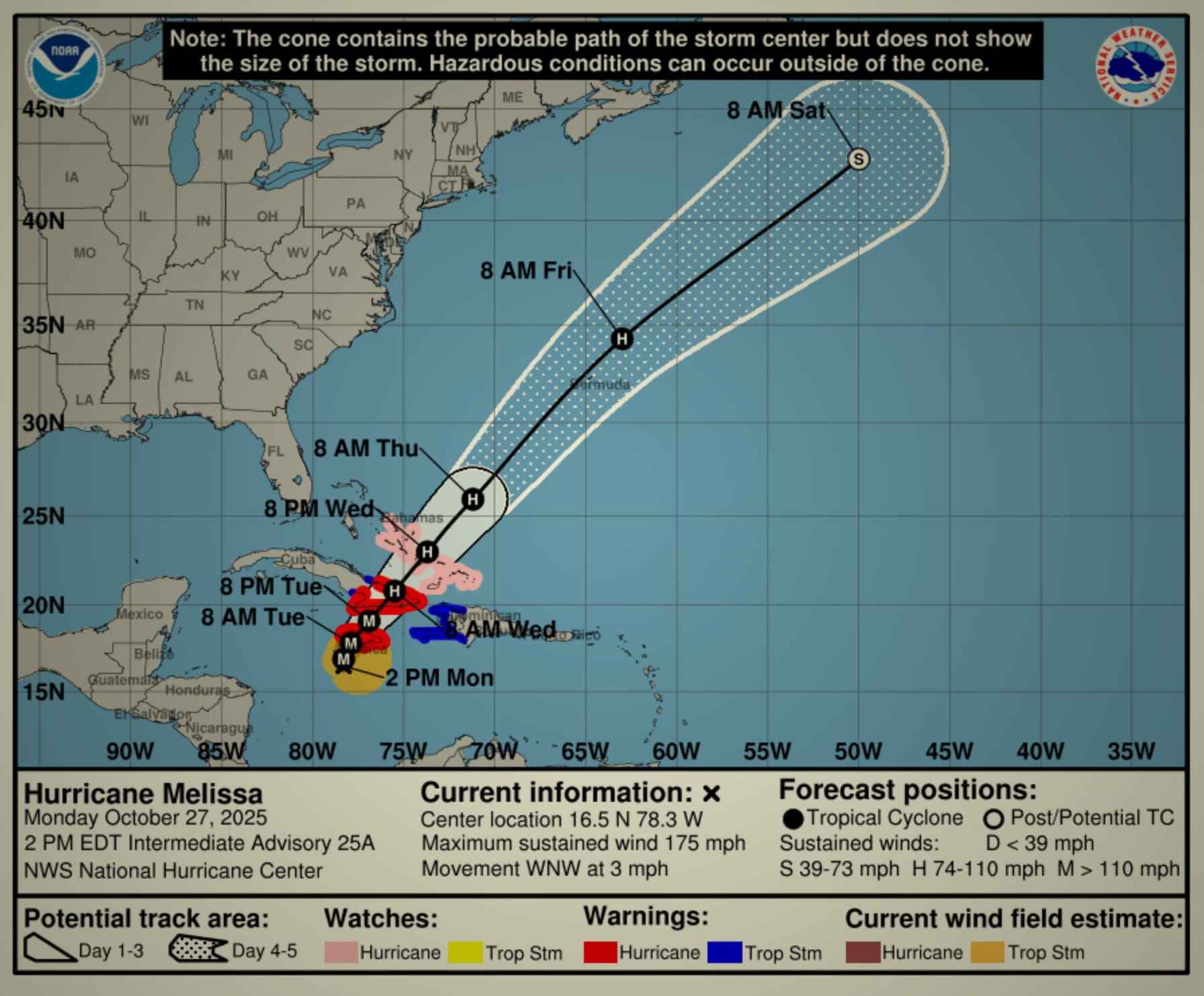 - Slouching toward Kingston. Melissa intensified over the weekend from a tropical storm into a Category 5 hurricane, fueled by warm ocean waters, low wind shear, and deep atmospheric moisture. By Monday, sustained winds exceeded 260 kilometers an hour. The storm is now crawling toward Jamaica at just 7 kilometers an hour—meaning catastrophic conditions could last for days—threatening up to 76 centimeters of rain there. It should make landfall early Tuesday morning.