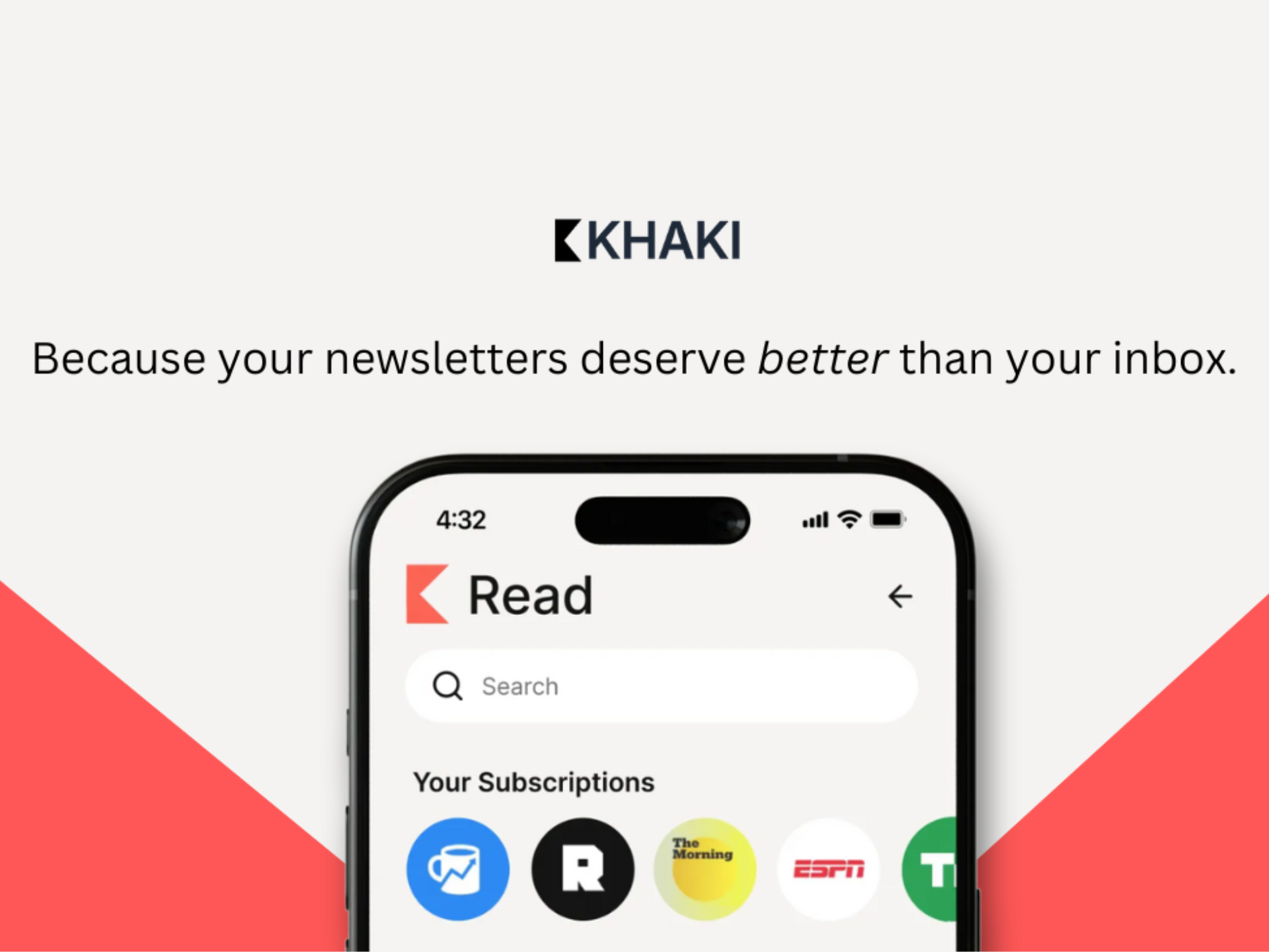 Khaki is a free app built exclusively for managing and reading newsletters. Clean interface, no distractions, and only the newsletters you want to see—not everything else in your usual inbox.