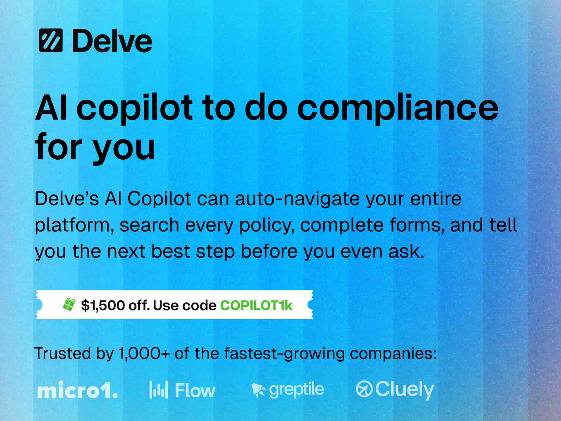 Delve’s AI copilot understands your entire tech stack and tells you exactly what you have to do next. Just ask it, and watch Copilot read your screen and start taking care of it for you.