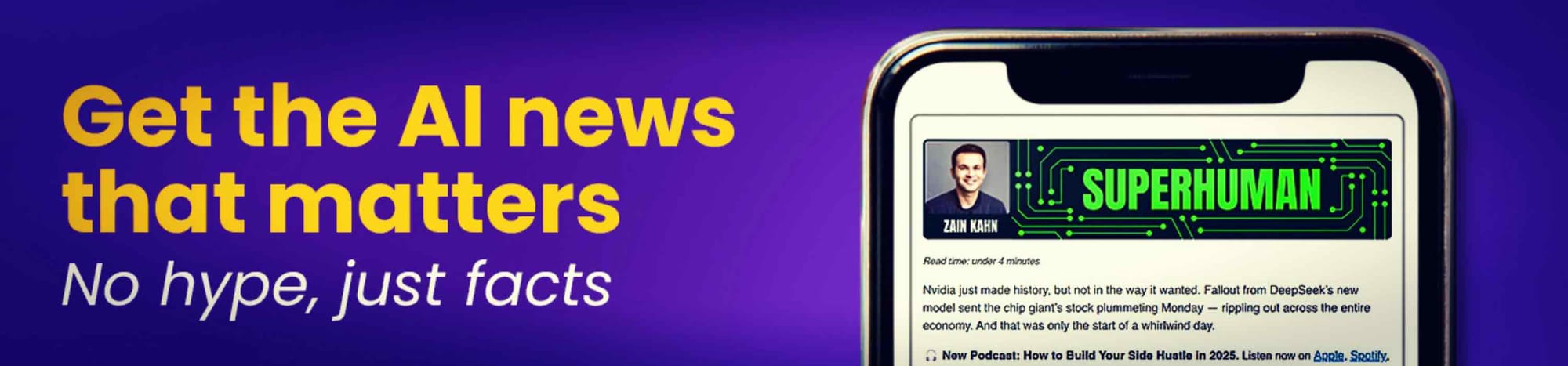 AI will eliminate millions of jobs in the next five years. Yours doesn’t have to be one of them. Here’s how to future-proof your career: Join the Superhuman AI newsletter, read by 1M+ professionals throughout leading tech companies and across sectors. Learn critical AI skills in just three minutes a day—and become the AI expert on your team.