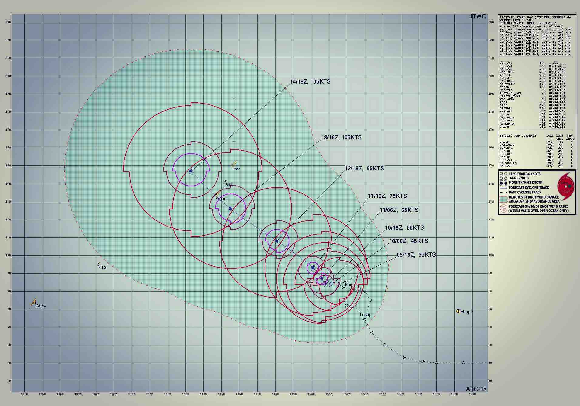 The Joint Typhoon Warning Center, the U.S. military's tropical-cyclone tracking operation in the Pacific, is tracking a storm that began on Thursday as Tropical Depression 4 but has since been upgraded to Tropical Storm 4 (Sinlaku). And it’s apt only to get more intense …